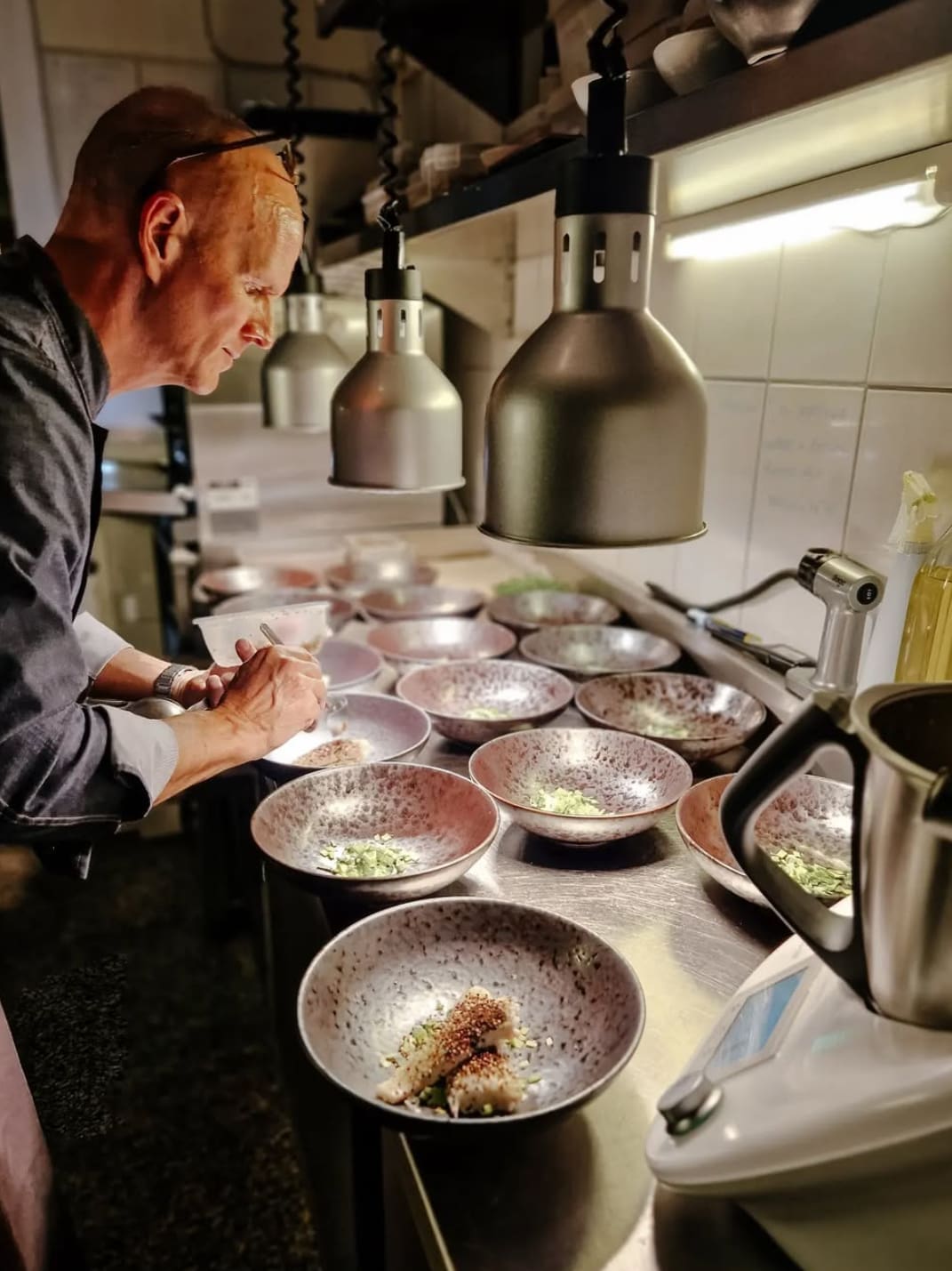 It starts with a drink at the bar and the wine bar is open to non diners up until 7pm so you can just pop in and have a glass and Henrik and Henriette will both be there for a chat as Henrik prepares the meal for the evening.