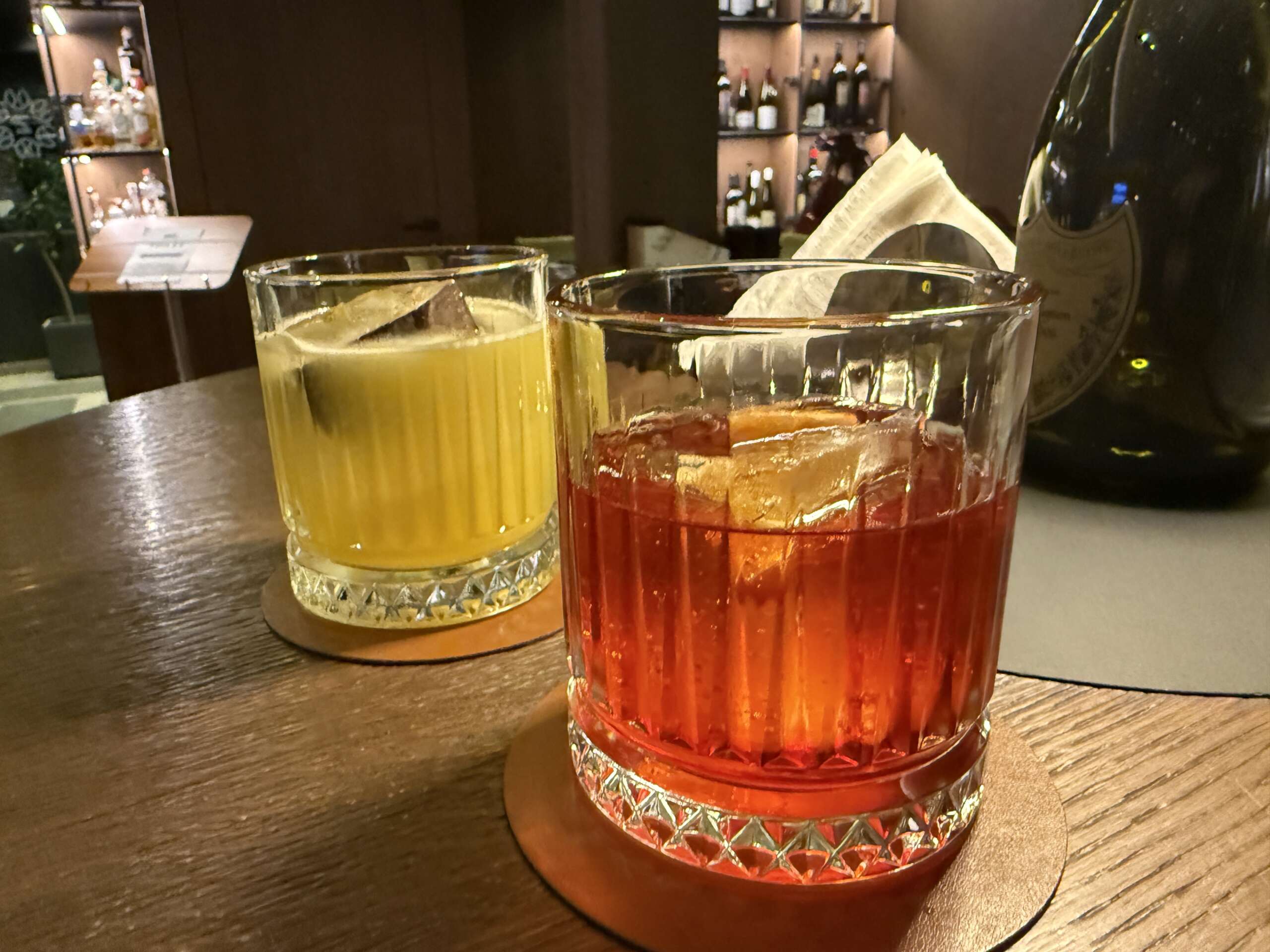 The cocktail bar had sports on the TV, there were hotel guests enjoying a drink. It felt at first that this was much more a casual hotel bar than the upmarket cocktail lounge image it was trying to portray. I ordered a Smoked Negroni (that came in a smoker box) and Angie had the Passionfruit Margarita. The drinks were good, and a generous serving of (complimentary) freshly cut parma ham and grissini to go with our drinks was lovely.