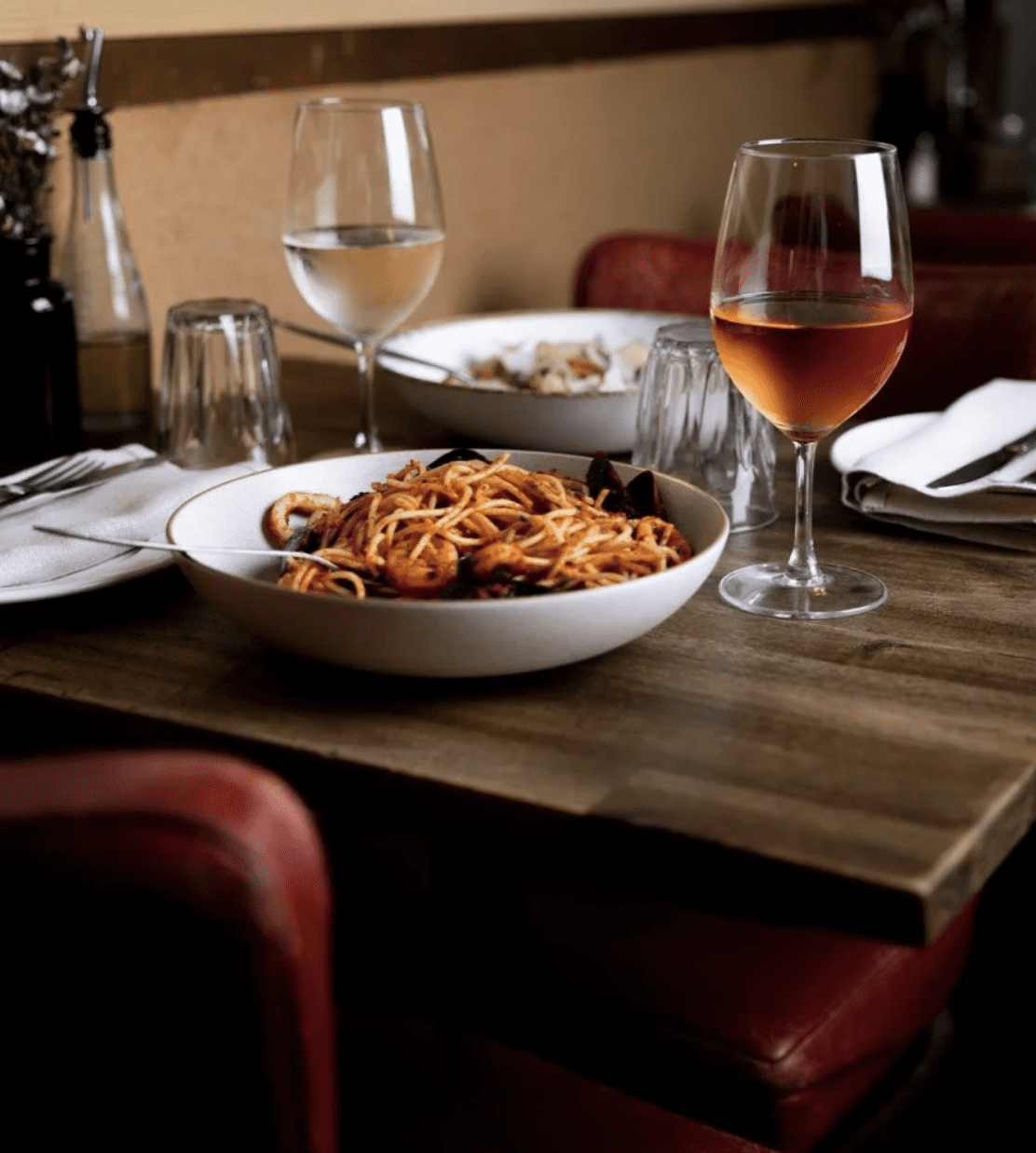 Antipasti—like arancini or stuffed onions—set the stage for bowls of slow-cooked lasagne, prawns with garlic and chilli tossed through spaghetti, and heart-stoppingly robust osso bucco pie when winter returns.