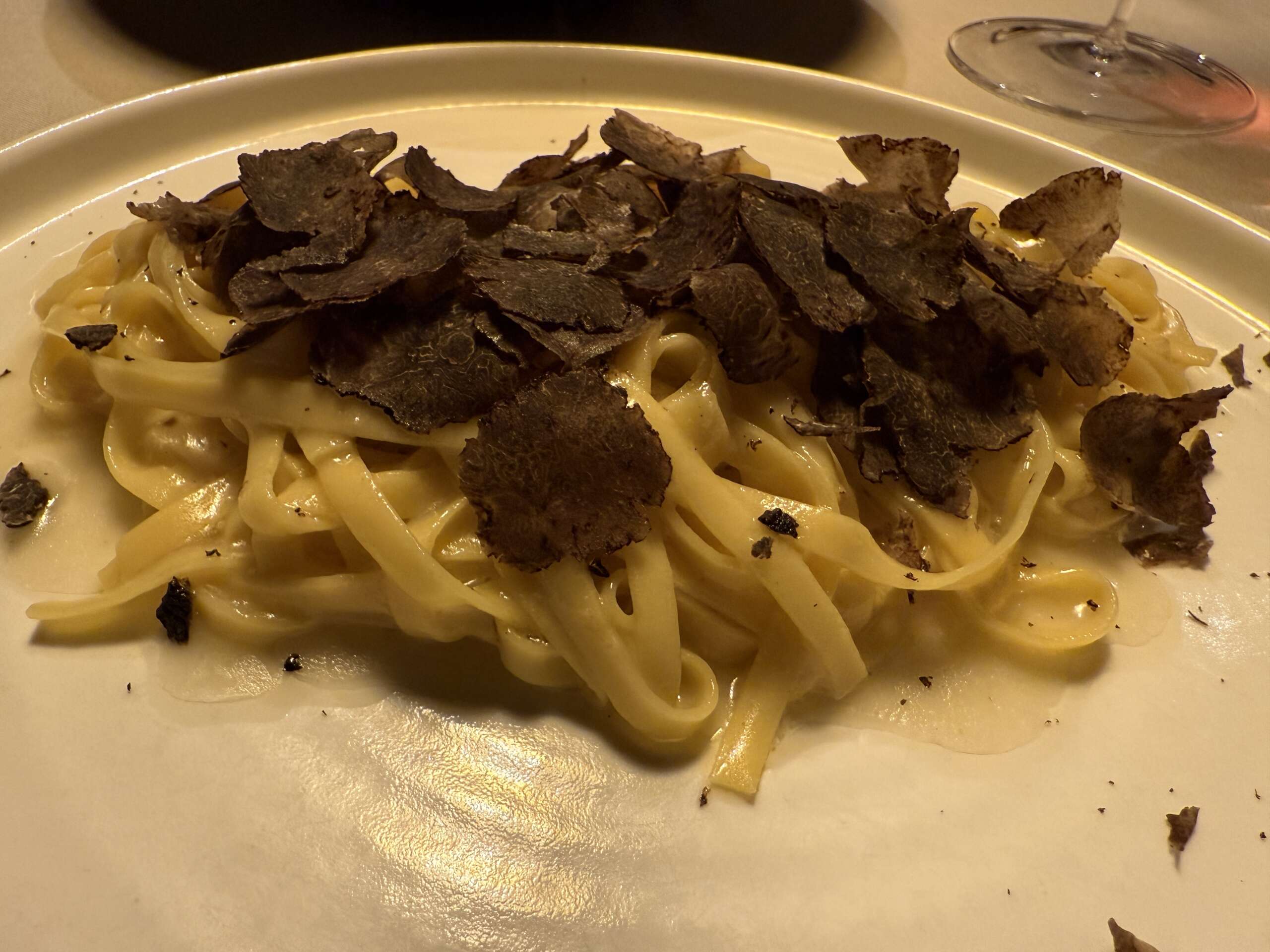 For mains I had a tagliatelle with black truffles (it seems that I just can’t get enough on this trip) which was exactly as I had hoped rich, but retaining the classic simplicity of flavours. Some grated Grana Padano was perfect to go with it.