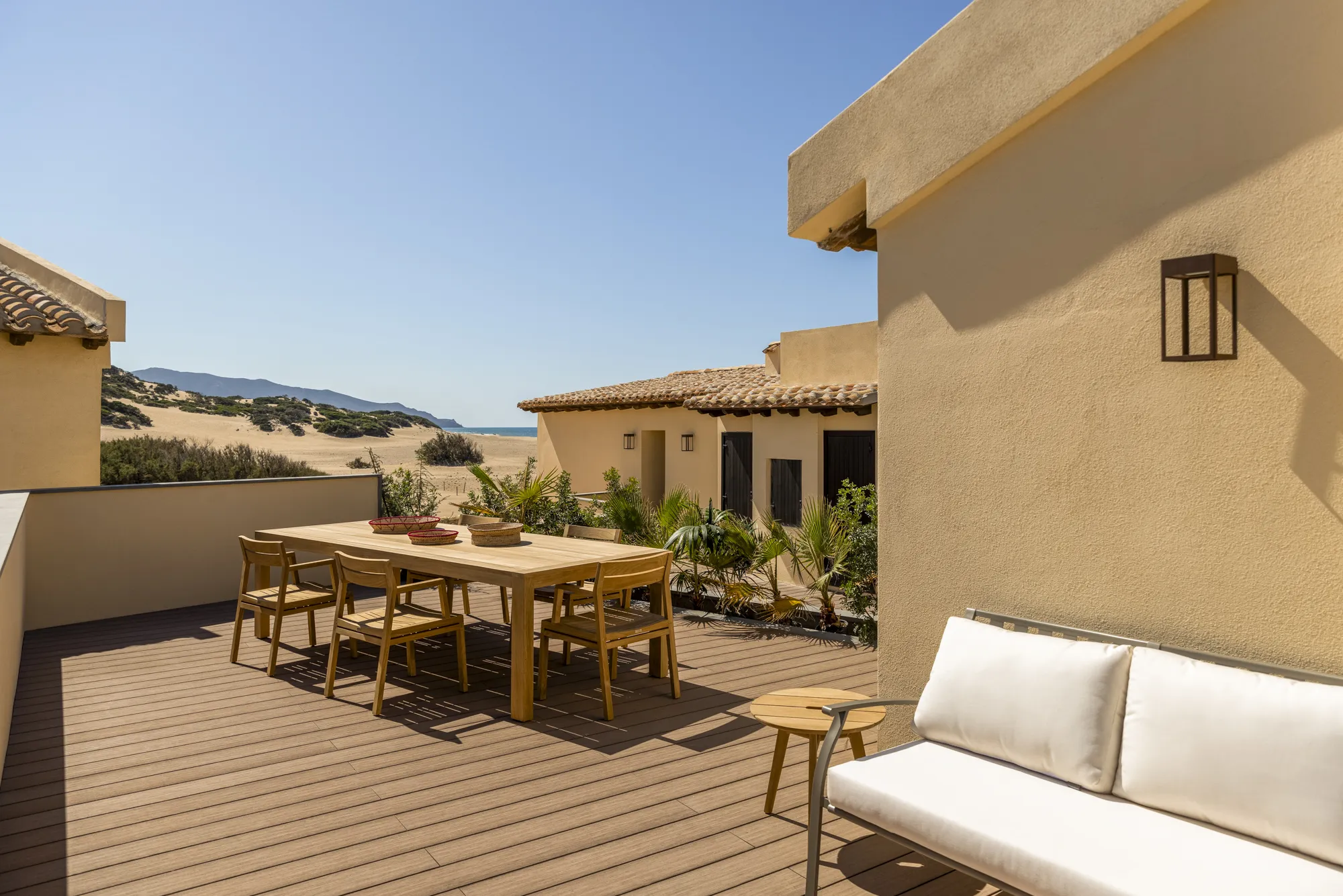Prestige rooms, some communicating with each other and some with a patio on the ground floor or a balcony on the first floor; and the prestige executive, on the second floor, with a balcony and a view of the dunes that almost seems to touch them! with the 3 classic rooms you have a total of 20 rooms distributed over three buildings, all with a view of the sea and the dunes of Piscinas, all different from each other and all equipped with floors and bathrooms in marble from nearby quarries with furnishings in wrought iron, wood and some iconic Italian design furniture.
